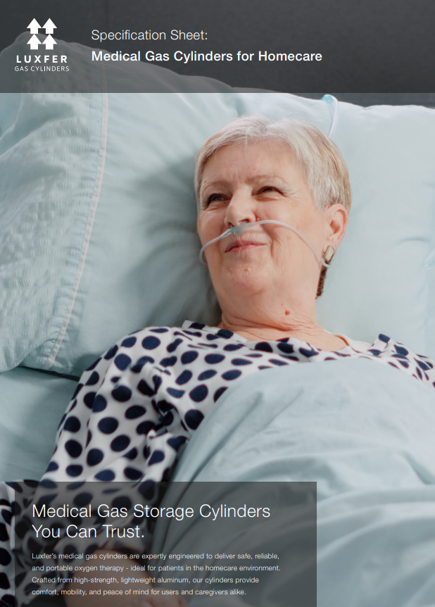 Medical Gas Storage Cylinders You Can Trust.Luxfer’s medical gas cylinders are expertly engineered to deliver safe, reliable, and portable oxygen therapy - ideal for patients in the homecare environment. Crafted from high-strength, lightweight aluminum, our cylinders provide comfort, mobility, and peace of mind for users and caregivers alike.